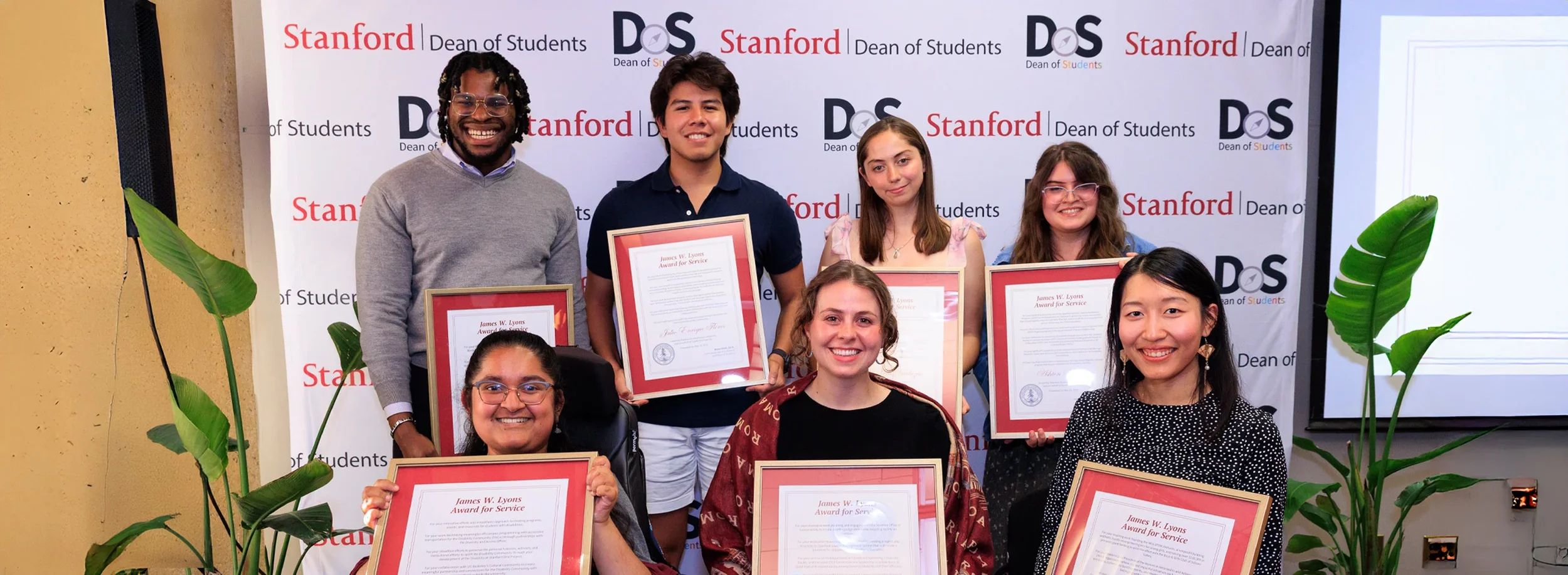 Edward Apraku, Sam Bunke, and Anna Kogler receive the 2023 Stanford Community Impact Award from the Stanford Alumni Association